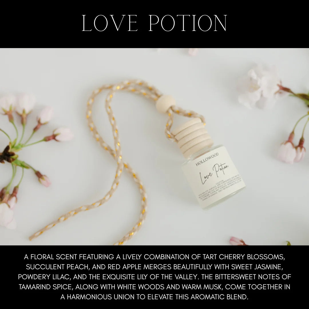 - LOVE POTION A floral scent featuring a lively combination of tart cherry blossoms, succulent peach, and red apple merges beautifully with sweet jasmine, powdery lilac, and the exquisite lily of the valley. The bittersweet notes of tamarind spice, along with white woods and warm musk, come together in a harmonious union to elevate this aromatic blend..