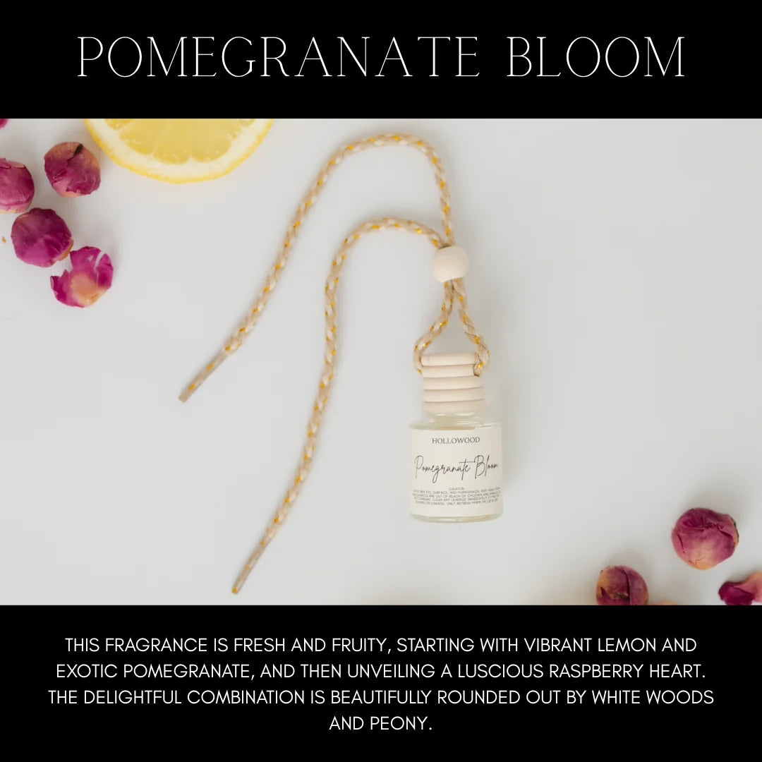POMEGRANATE BLOOM This fragrance is fresh and fruity, starting with vibrant lemon and exotic pomegranate, and then unveiling a luscious raspberry heart. The delightful combination is beautifully rounded out by white woods and peony.