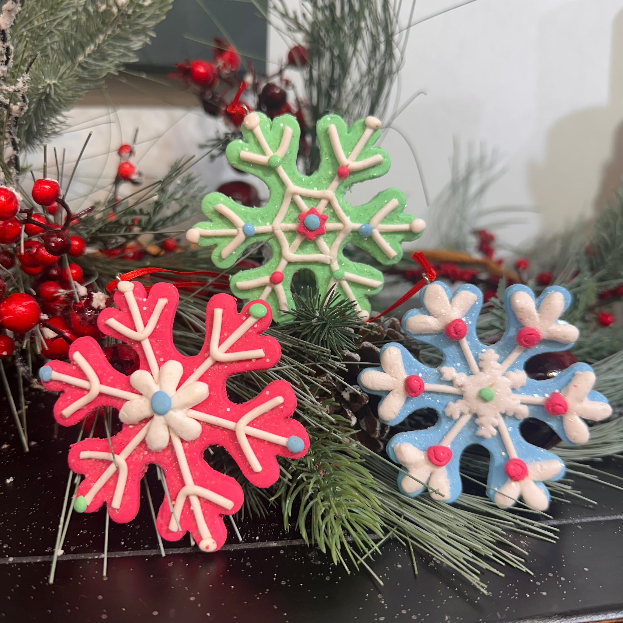 These 3.5" clay dough snowflake ornaments bring a playful sparkle to your holiday decorations. Each delicate snowflake adds a unique charm to your tree or gift wrapping. Lightweight and easy to hang, they’re perfect for spreading festive cheer with a crafty twist. Celebrate the season with these whimsical, wintry treasures!