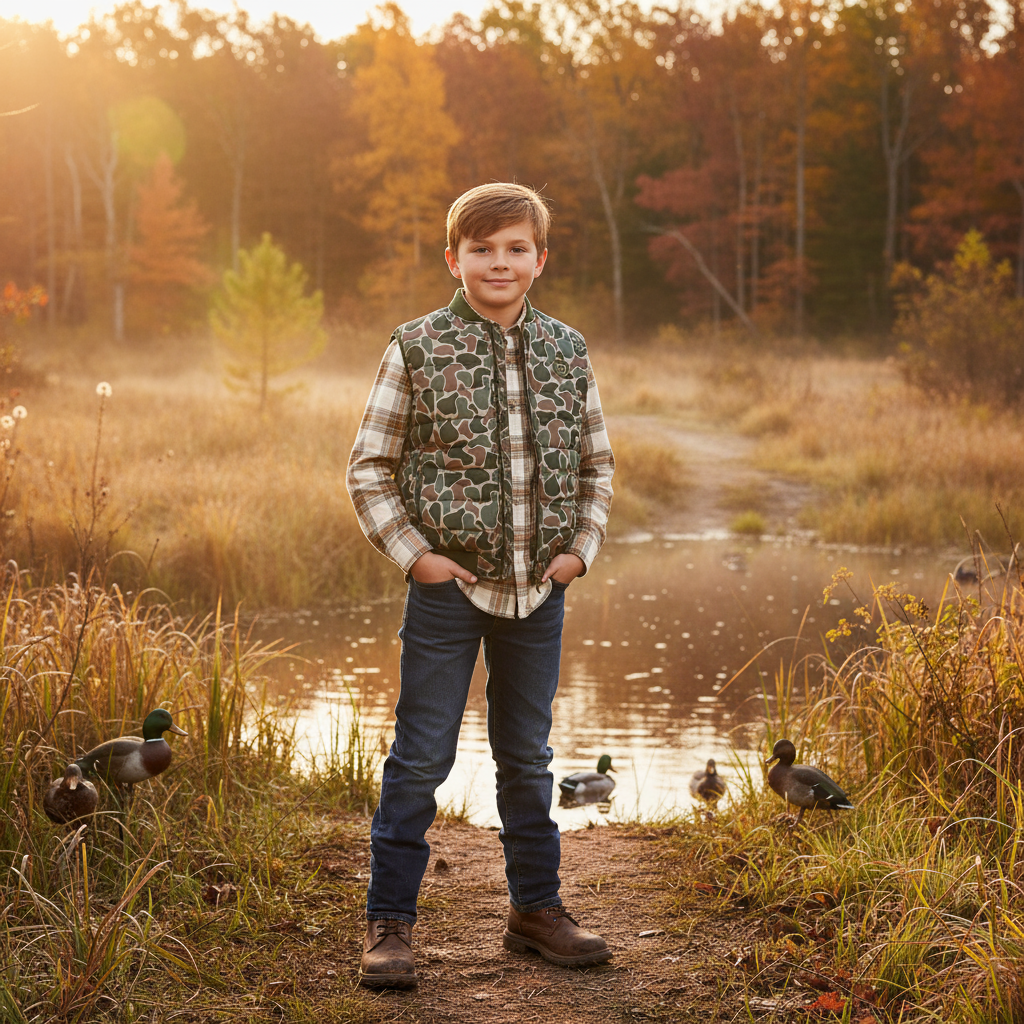 The Fieldstone Roost Camo Puffer Vest is built for little explorers from 3 months up to Youth Large, combining playful style with practical warmth. Featuring a full-zip front, this vest also offers two zip hand pockets to stash treasures found on outdoor adventures. Its banded hem and collar provide a snug fit that keeps chilly breezes out, making it perfect for layering over tees or sweaters. Ready for endless fun and fresh air, the Fieldstone Camo Puffer Vest keeps your little one comfy and cool wherever the day takes them!