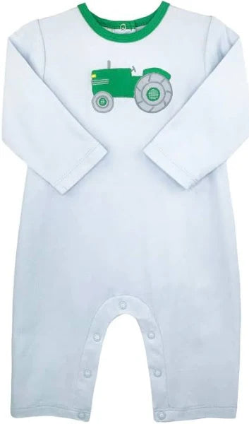GREEN TRACTOR APPLIQUE LONGALL ROMPER