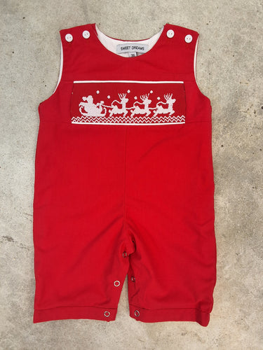 SANTA SLEIGH SMOCKED RED LONGALL