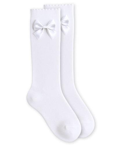 WHITE SATIN BOW SCALLOPED KNEE SOCKS
