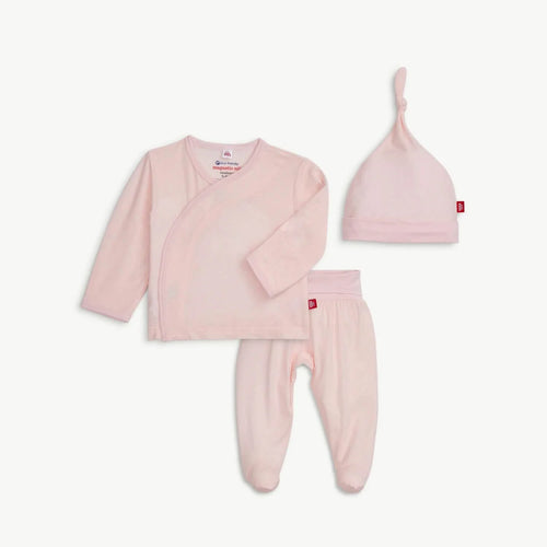 MAGNETIC ME - PREEMIE PIN DOT PINK KIMONO HAT SET - 3pc SET