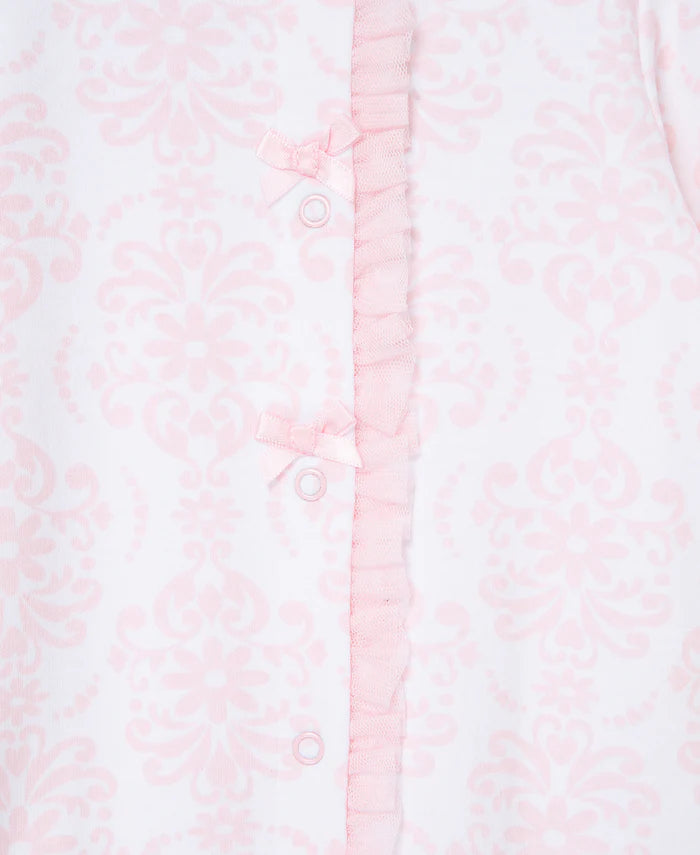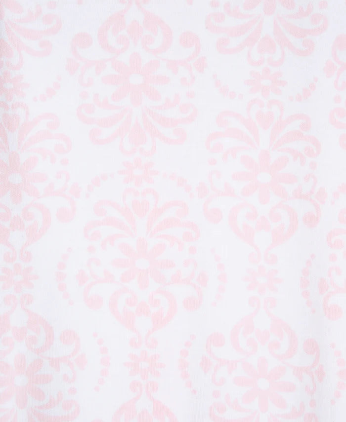 Your baby girl will love her damask print footie perfect for nap-time and playtime. Outfit details include lacy trim and a cute matching hat.