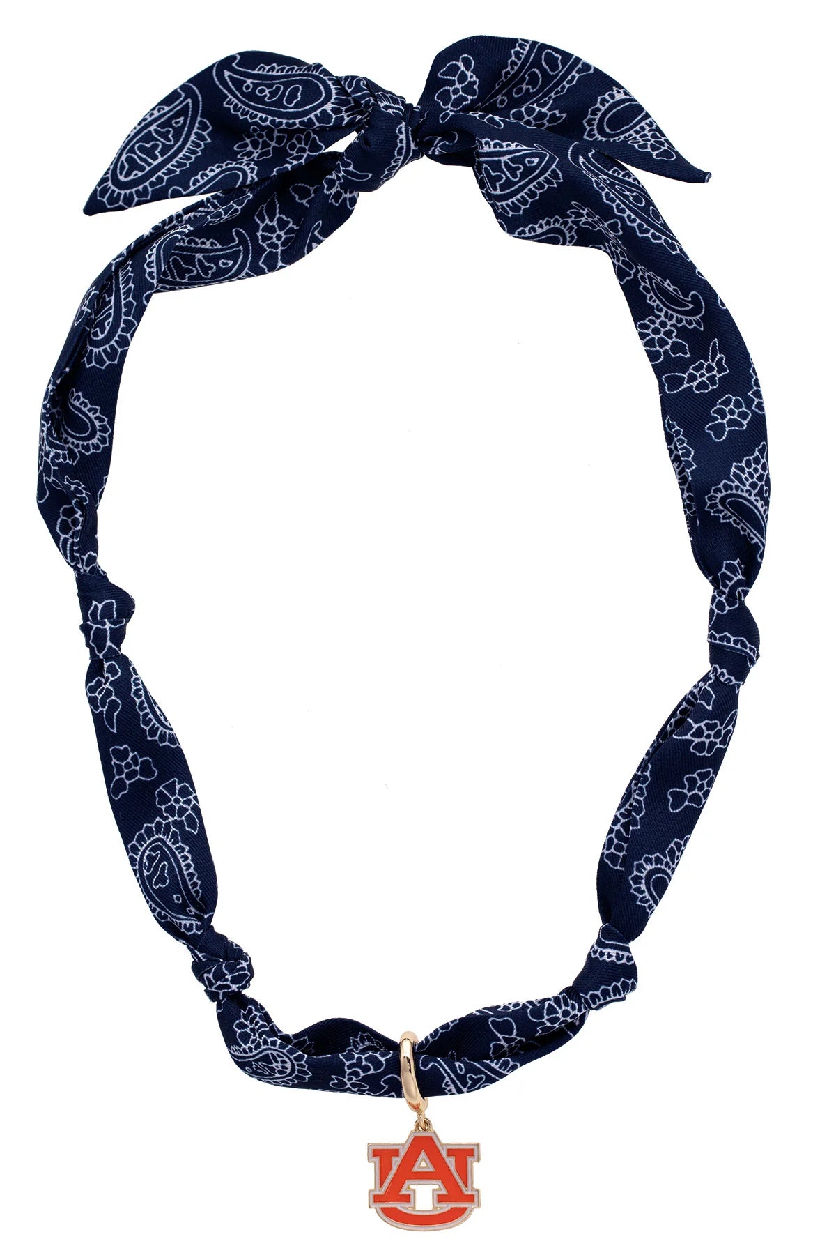 Blend fashion and fandom with the Bandana Scarf Necklace. This versatile accessory features a soft bandana scarf paired with a gold-plated logo pendant for a chic game day look.