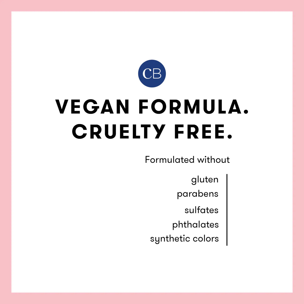 Non-toxic. Vegan formula. Cruelty-Free. Formulated without gluten, parabens, sulfates and phthalates. No synthetic colors.