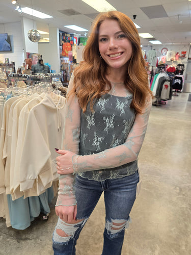 MESH TOP WITH PEARL DETAIL - BLACK