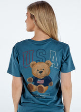 Show your patriotic spirit with the Comet blue short sleeve shirt featuring a charming teddy bear dressed in a cozy, star-spangled Tee, proudly displaying the letters "USA." The playful design extends to the left chest for a matching touch, making this shirt perfect for festive gatherings or casual outings. Crafted for comfort and style, it’s an ideal way to celebrate your love for country with a fun and youthful vibe. Plus, the subtle Simply Southern logo adds a signature finish, ensuring this tee is both cute and authentically American.