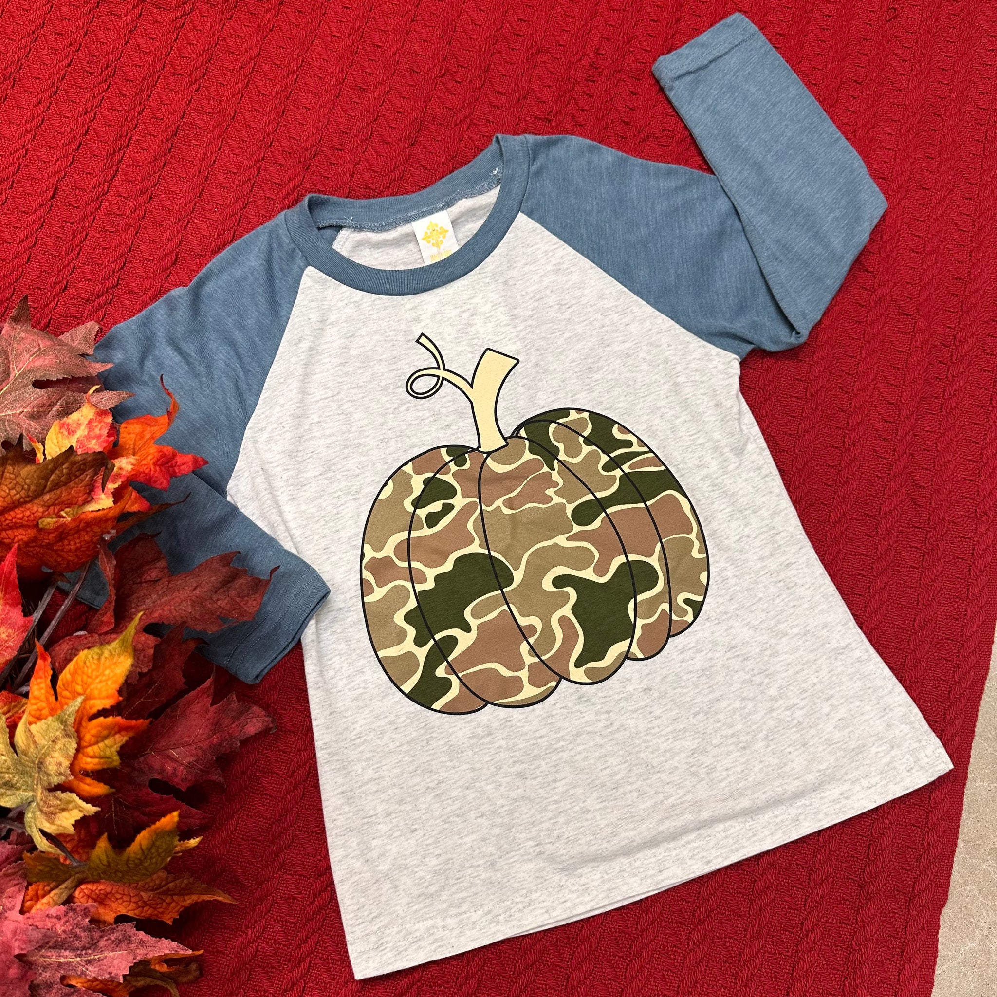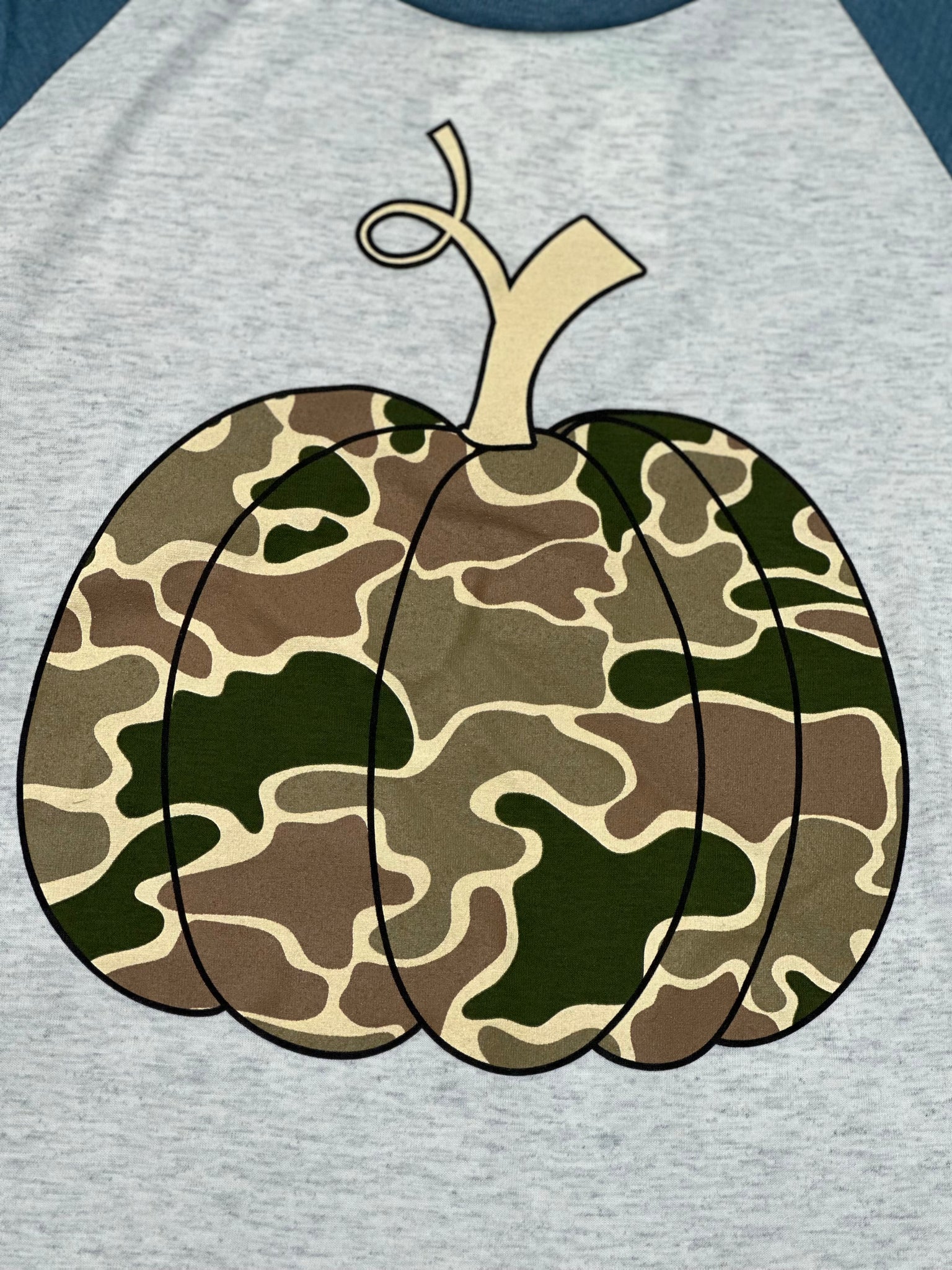 KIDS CAMO PUMPKIN RAGLAN TEE