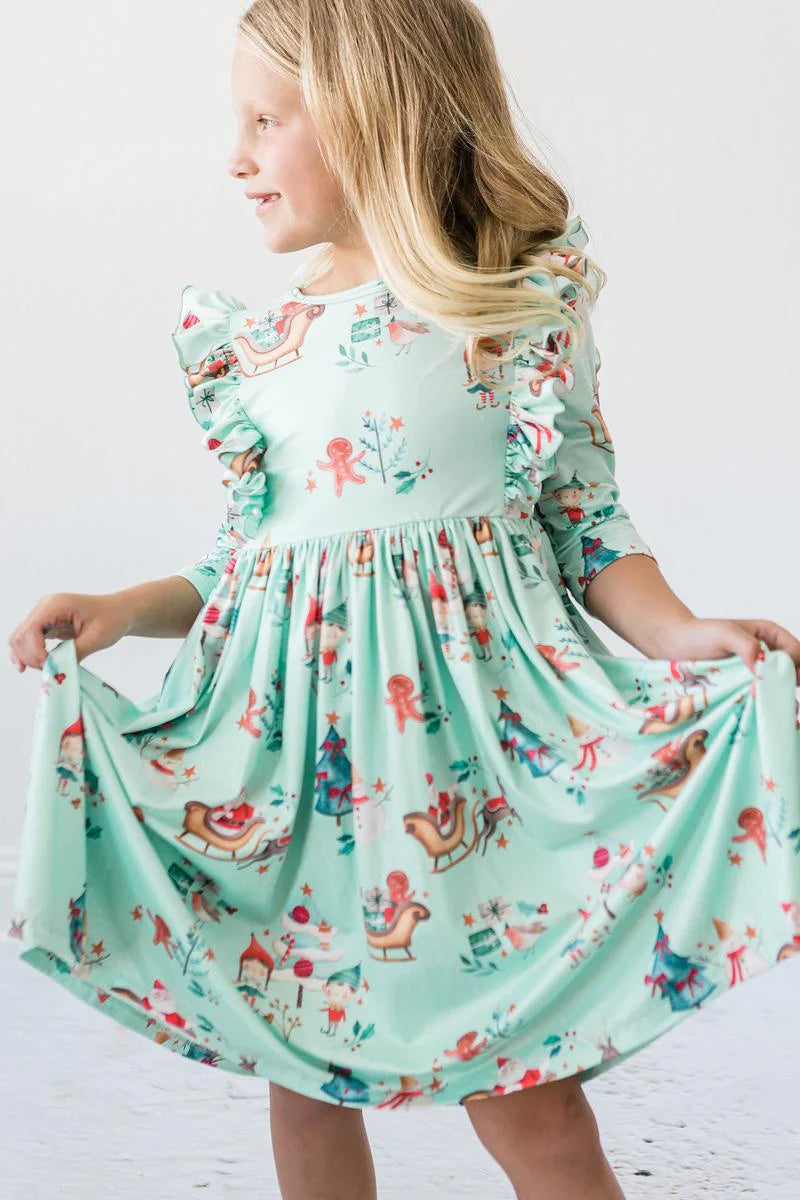 Believe in Your Elf 3/4 Sleeve Ruffle Twirl Dress