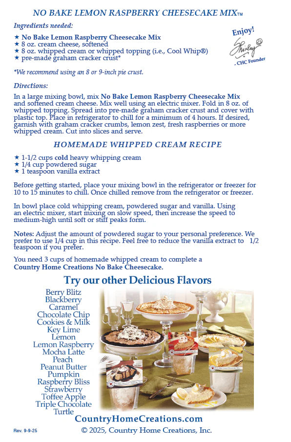 - 1 Country Home Creations No Bake Cheesecake Mix (any flavor)