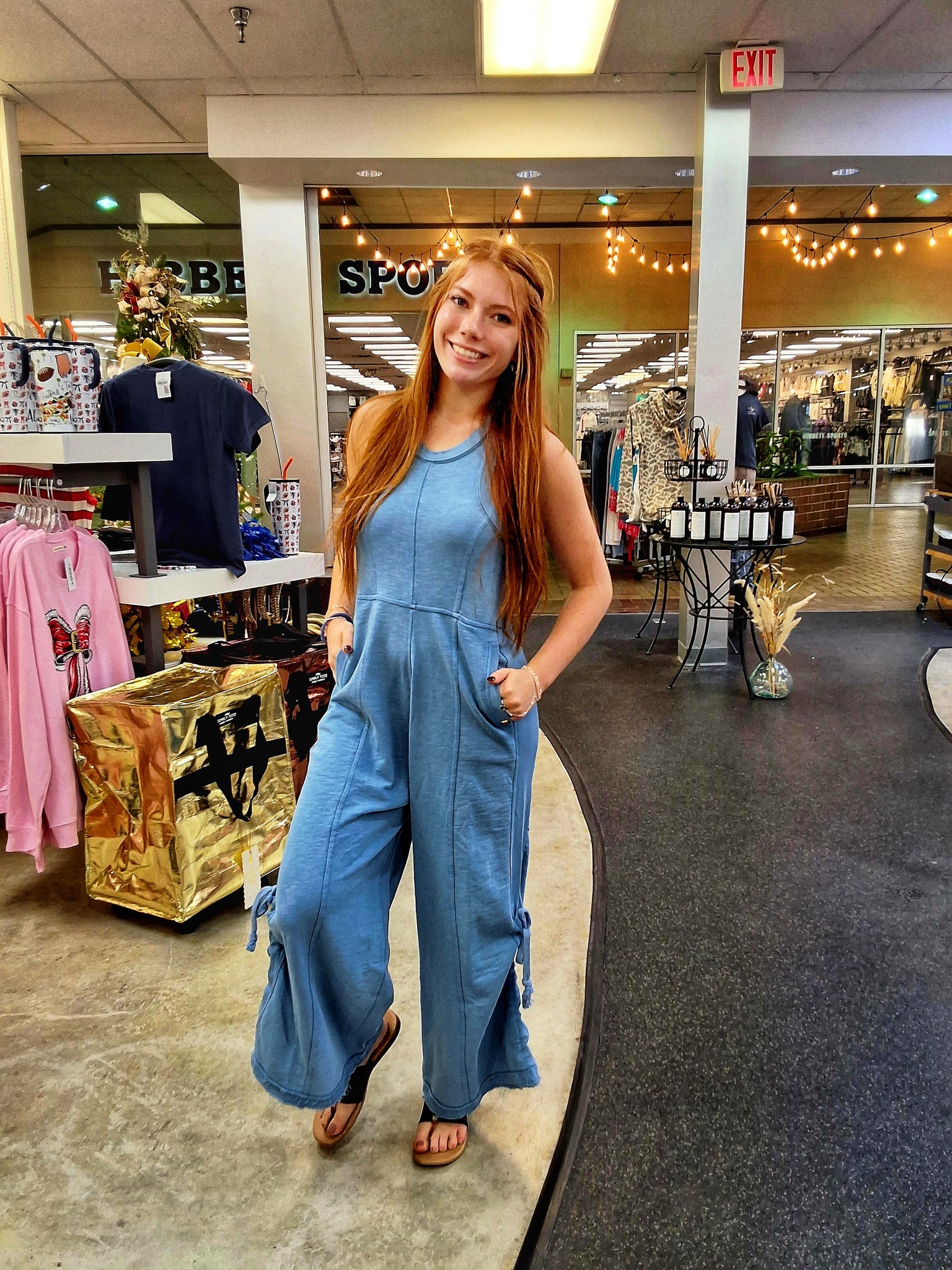 Step into effortless style with the Simply Southern blue jumpsuit, a playful and chic addition to your wardrobe. Crafted from 100% cotton, this jumpsuit offers a flattering silhouette that hugs your curves just right, ensuring comfort and confidence all day long. The vibrant blue color adds a cheerful pop, perfect for brightening up any occasion. Functional front pockets bring a casual flair and practical convenience to your look, ideal for keeping essentials close or simply adding a fun touch. Dress it up with bold accessories for brunch or keep it relaxed for a day out at the park—this versatile jumpsuit adapts to your every mood. Embrace easy elegance and playful summer vibes with this must-have piece that blends comfort, style, and a splash of color effortlessly.